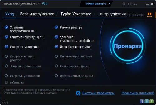 Advanced SystemCare - программа, включающая в себя множество модулей для оптимизации, настройки и повышения производительности компьютеров, находящихся под управлением операционными системами Windows 2000/XP/Vista/7/8.