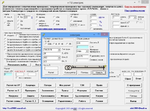 Добавлено: В модуль расчета "ТЭН" добавлен расчет обогрева помещений (кнопка "ТЭН"): Определить мощность для отопления по площади помещения Определить площадь для прогрева помещения по мощности Расчет мощности электрического конвектора Расчет мощности инфрокрасных обогревателей В модуль "Разное" добавлен расчет характеристик двигателей (режимы работ ПВ, ДТ) (кнопка "Разное")