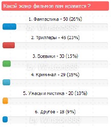 Новый вид опроса как на dle теперь и на ucoz. Красивые разноцветные тона, думаю вам понравится)